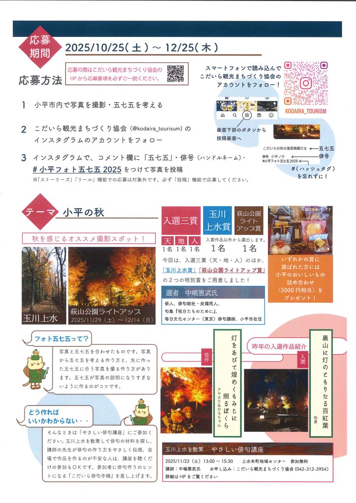 - 問合せ:一般社団法人こだいら観光まちづくり協会