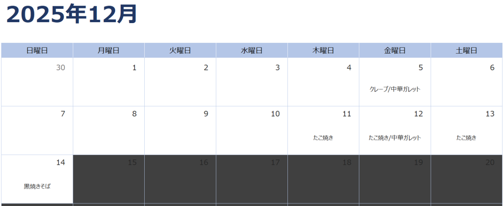 ■キッチンカー出店(12/12更新)