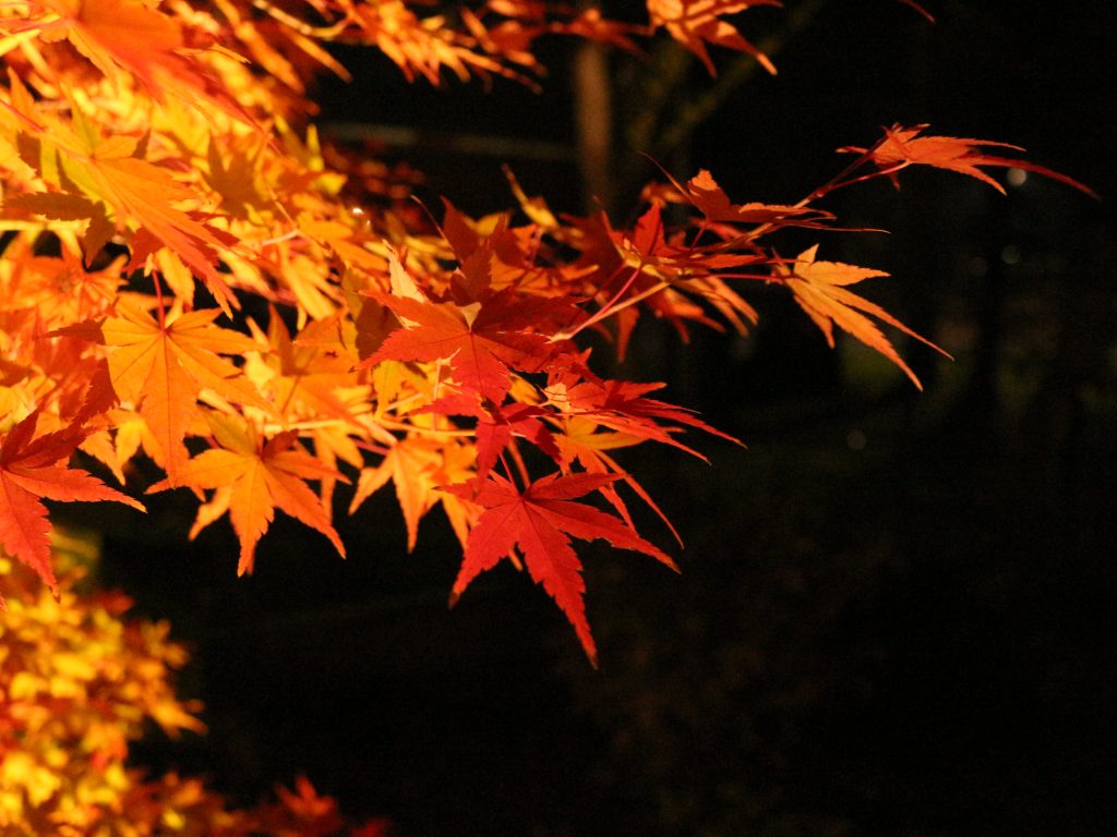 100本以上のイロハモミジが暗闇に浮かび上がる空間はとても幻想的。