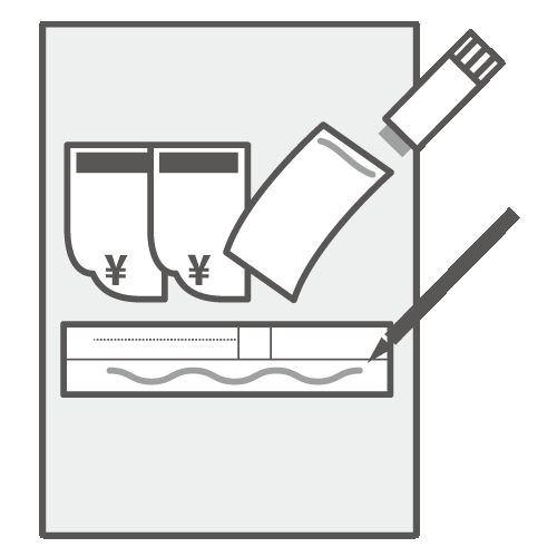 応募用紙の「貼り付け欄」に合計一万円(税込)以上のレシートまたは領収書を貼り付け、必要事項を記入します。