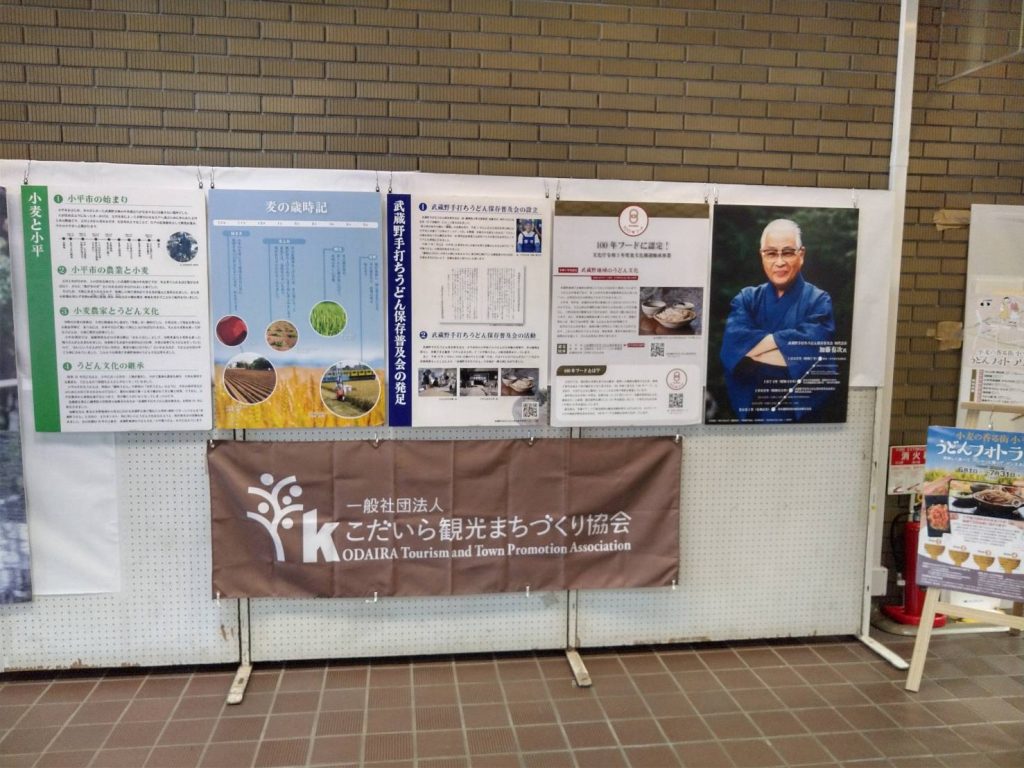会場では、小平糧うどんについての動画とパネルの展示、冊子「小平うどん文化ガイド」の配布を行っています。