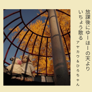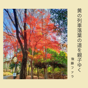 黄の列車落葉の道を親子ゆく 後藤ファラ