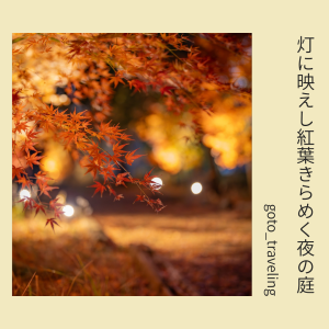 灯に映えし紅葉きらめく夜の庭 goto_traveling